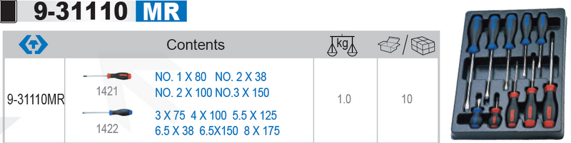 Wkład narzędziowy z wkrętakami pł/krz 10 szt.